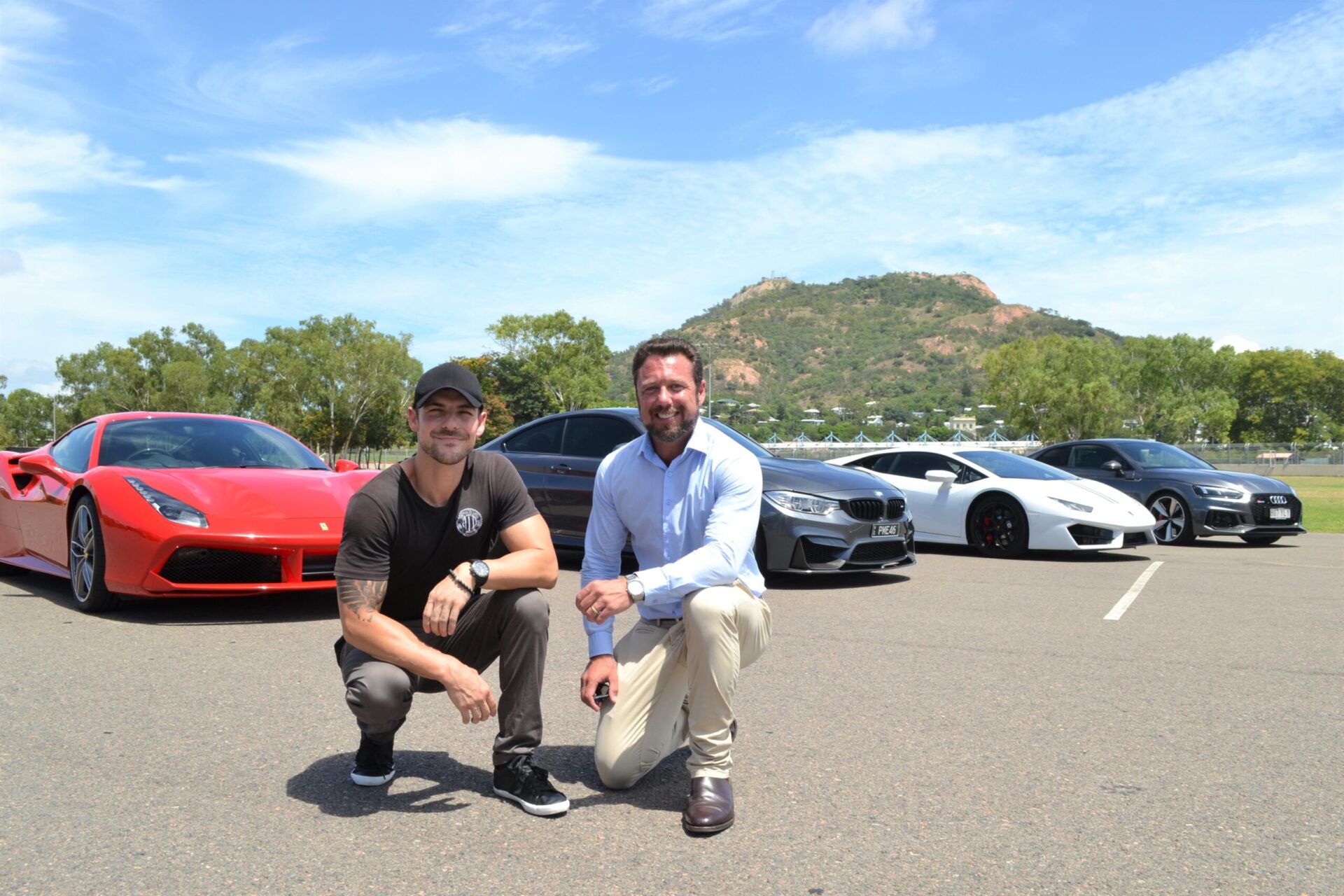 Hinchinbrook MP Nick Dametto and Attention to Detail owner Phillip Moravcik with a locally owned Ferrari 488, BMW M4, Lamborghini Huracan and Audi RS5 at Townsville’s Reid Park.[/caption]